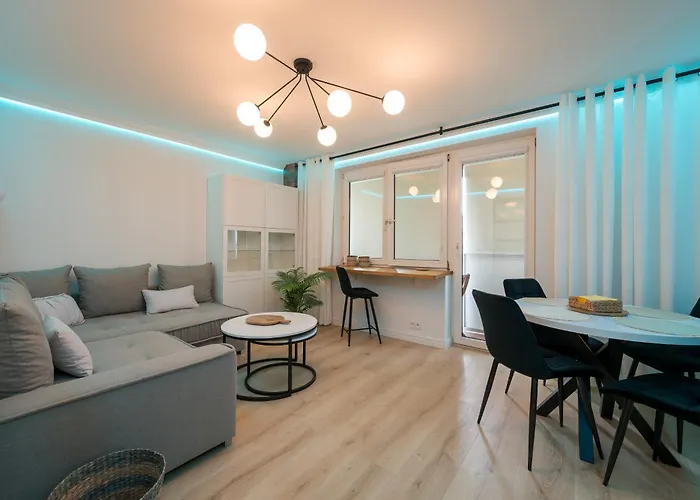 Dieses Apartment bietet eine voll ausgestattete Küchenzeile mit einem Herd und einem Geschirrspüler für die Zubereitung eigener Mahlzeiten. Eine 20-minütige Fahrt führt zum Flughafen Warschau-Frédéric-Chopin.